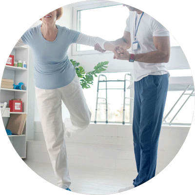 Balance and fall prevention therapy focuses on improving stability, coordination, and confidence with movement. Through targeted exercises and education, patients can reduce fall risk and maintain independence in daily activities.